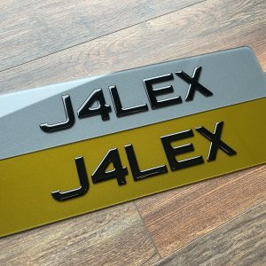 3D Gel Plates in Metro Font 60mm With Large Range Rover Rear Plate- Gloss Black Finish